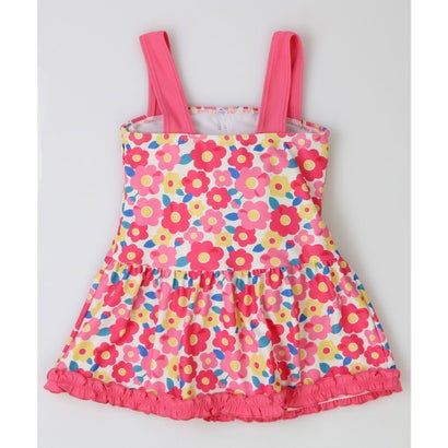 テディショップ teddyshop キッズ水着 女の子用フリルリボンオールインワンスイムウェア (E:フラワー柄(ピンク))【返品不可商品】